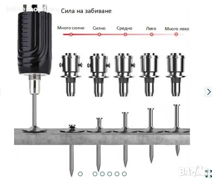 Този продукт ще ви служи за много години. Пет нива на мощност при забиване на пироните