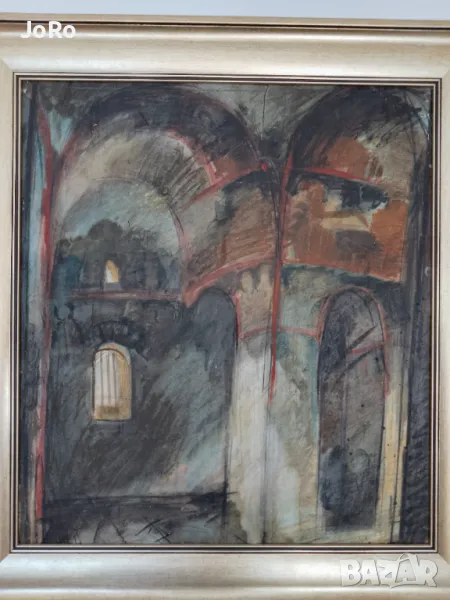 Авторска картина 80те години, смесена техника размери 60 на 65см. Подпис отзад на гърба "Свилен" датирана 4.7.89г, най вероятно е ранна творба на Свилен Блажев .