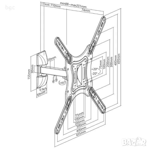 Лесна за инсталиране и стандартът VESA я правят съвместима с всички марки телевизори, независимо дали това са LED телевизори, 3D LED, LCD.