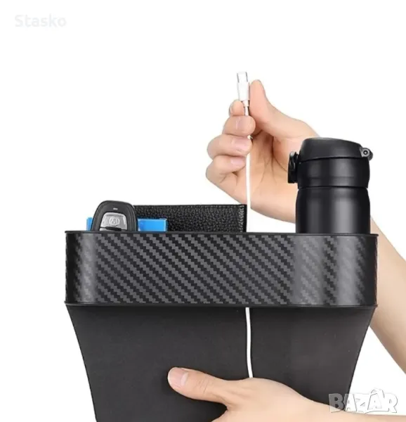 Органайзер за автомобил - за празното пространство между седалката и централната конзола.Ако искате повече , да не ви падат неща там , имаме решение.Органайзера разполага с поставка за чаша , поставка за телефон и вещи , както и специален вход за кабела на вашето зарядно ако искате да си зареждате телефона