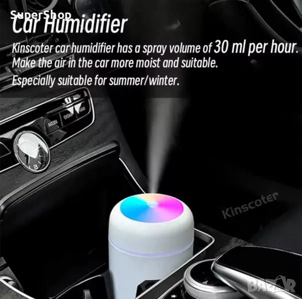 Изключително удобен и като ароматизатор за автомобил заради компактния си размер и красивото RGB осветление.