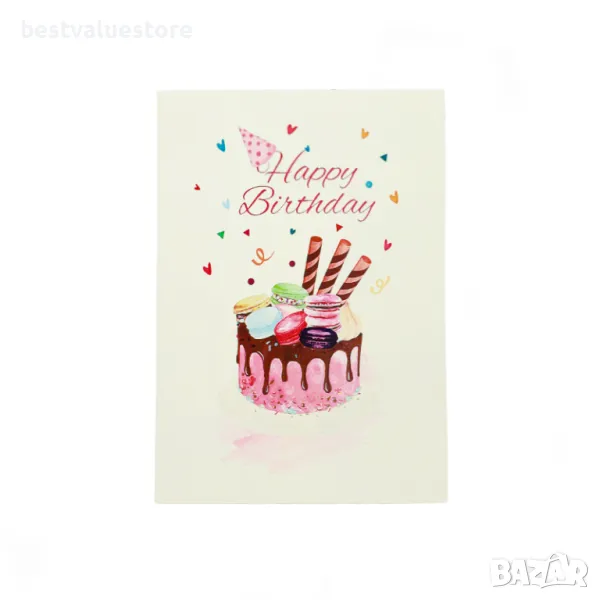 Поздравителна Картичка 3D Pop Up Торта С Френски Макарони