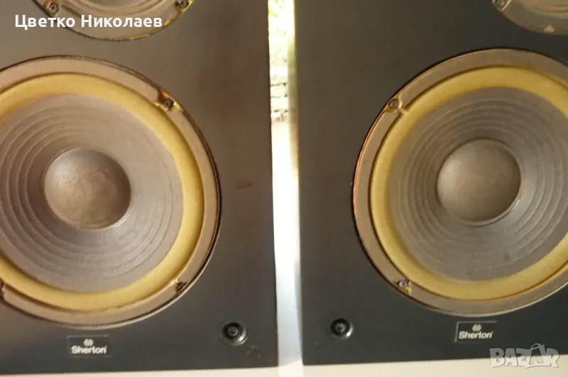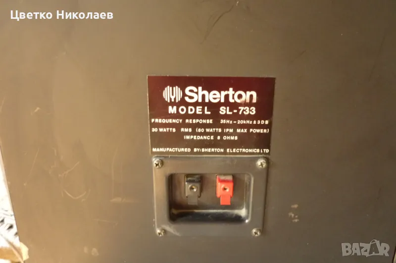 Sherton sl-733 8Ohm 30w.Колоните са подходящи за лампови усилватели, особено за джаз музика. Едната пищялка е леко натисната и едната среда е прилепена което по никакъв начин не влияе. Имат и филтри.