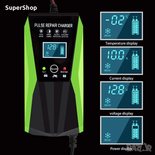 Поддържайте акумулатора на вашaта кола заредена и готова за работа с нашето 12V зарядно за акумулатор. С нов дизайн за лесна употреба, това зарядно устройство осигурява подходящо напрежение за зареждане и интелигентен цифров дисплей за ясно виждане. Вижте състоянието на акумулатора и зареждайте ефективно без никакви проблеми.