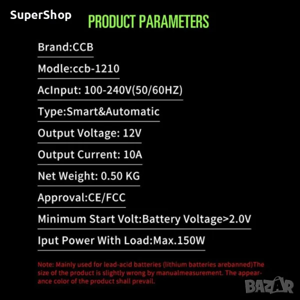 Професионално Зарядно за акумулатор кола 12v, снимка 1 - Аксесоари и консумативи - 46934494 Професионално Зарядно за акумулатор кола 12v, снимка 2 - Аксесоари и консумативи - 46934494 Професионално Зарядно за акумулатор кола 12v, снимка 3 - Аксесоари и консумативи - 46934494 Професионално Зарядно за акумулатор кола 12v, снимка 4 - Аксесоари и консумативи - 46934494 Професионално Зарядно за акумулатор кола 12v, снимка 5 - Аксесоари и консумативи - 46934494 Професионално Зарядно за акумулатор кола 12v, снимка 6 - Аксесоари и консумативи - 46934494 Професионално Зарядно за акумулатор кола 12v, снимка 7 - Аксесоари и консумативи - 46934494 Професионално Зарядно за акумулатор кола 12v, снимка 8 - Аксесоари и консумативи - 46934494 1/8
