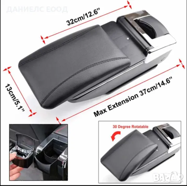 Универсален подлакътник със стойка за чаша,пепелник и отделение за вещи.Подходящ за всички модели автомобили благодарение на нов вид регулираща се система за закрепване.