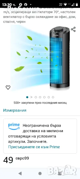 настолен вентилатор с бързо охлаждане за офис, дом, спалня, черен.Компактен и преносим дизайн: 13-инчовият вентилатор тип кула има пестящ място, компактен дизайн с дръжка на гърба и тежи само 2,6 паунда. Пренесете го лесно във всяка стая - идеален за вашата всекидневна, спалня, кухня, каравана или офис.Насладете се на 3 променливи скорости и осцилационни функции, които ви позволяват да регулирате охлаждането според вашите предпочитания и да създадете комфортна, прецизно съобразена среда.