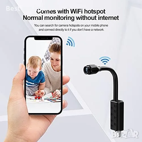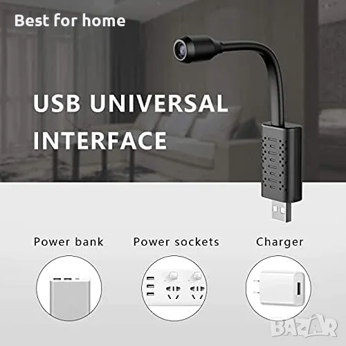 Лесен за използване: Просто го включете и камерата ще започне да работи. Камерата за сигурност поддържа Wi-Fi дистанционно гледане, запис на видеоклипове и правене на снимки чрез безплатно мобилно приложение. Plug and play универсален USB интерфейс.