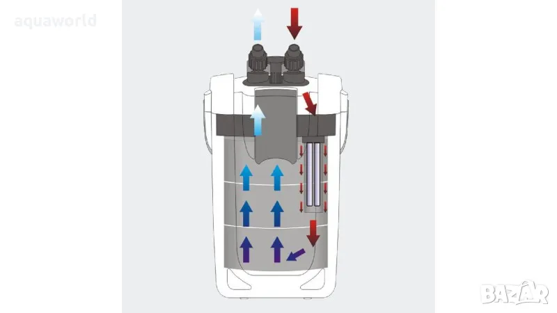 Този филтър е подходящ, както за морски, така и за сладководни аквариуми. Той е мощен, ефективен и същевременно тих. Лесен е за инсталиране и поддръжка, има три кошници за различни основи – за механични, биологични и химически вещества. Филтърът притежава керамични валове за по-дълъг експлоатационен живот на ротора. Вградената UV-лампа (9W) предотвратява появата на зелени водорасли, патогенни бактерии и микроорганизми. Тя може да се включва и изключва. Към него са включени всички аксесоари - тръби, маркучи, адаптери, дюзи и пълнител за механична филтрация.