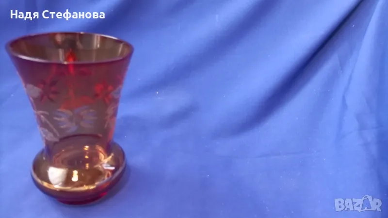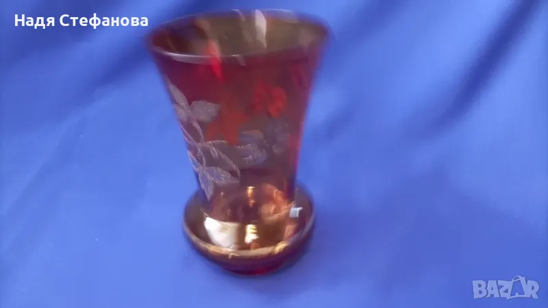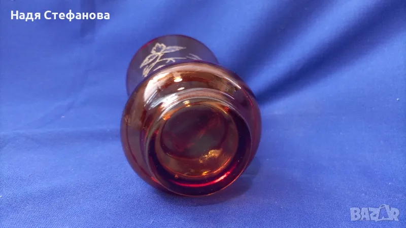 Вазичка, цветно стъкло, златни шарки, червеникава → Обява 46935956