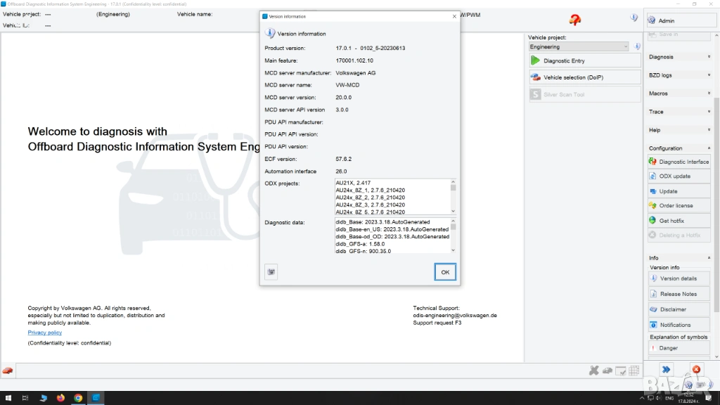 Предлагаме инсталация и конфигурация на ODIS Service, ODIS Engineering и Flashdaten Database 6.2024 за автомобили от групата VW, Audi, Skoda, Seat, Bentley и Lamborghini. С този пакет ще разполагате с пълния набор от софтуер на дилърско ниво, същият като в основните дилърски сервизи, позволявайки ви да изпълнявате всички функции, които дилърът може.