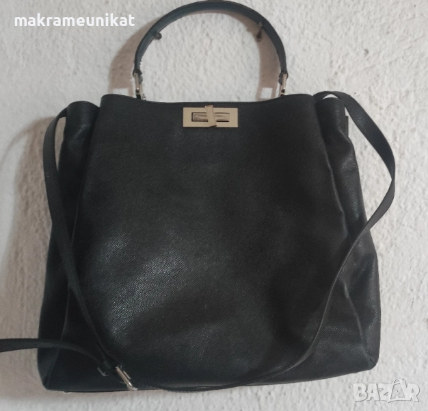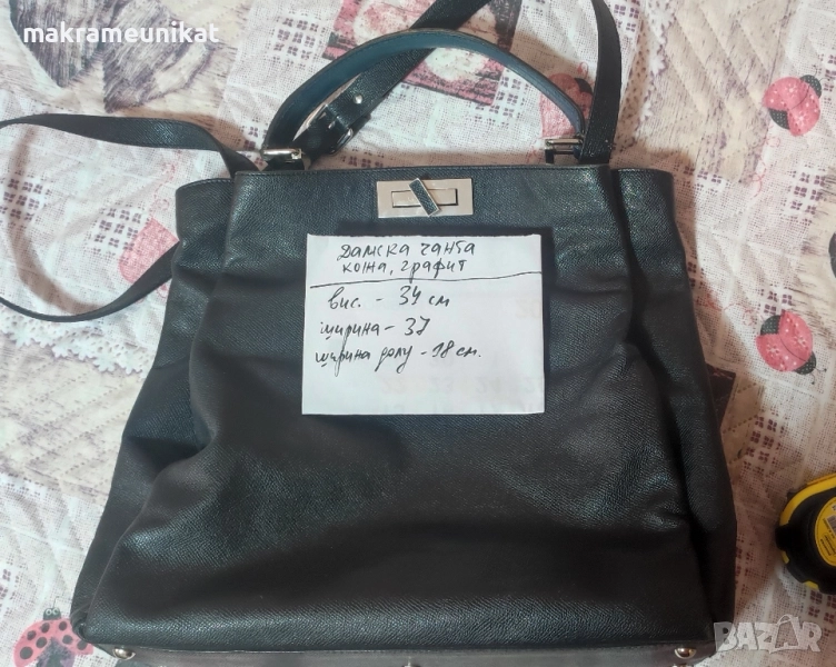 Дамска чанта, голяма, кожа, цвят графит, → Обява 46937084