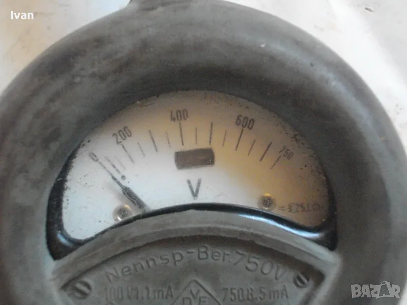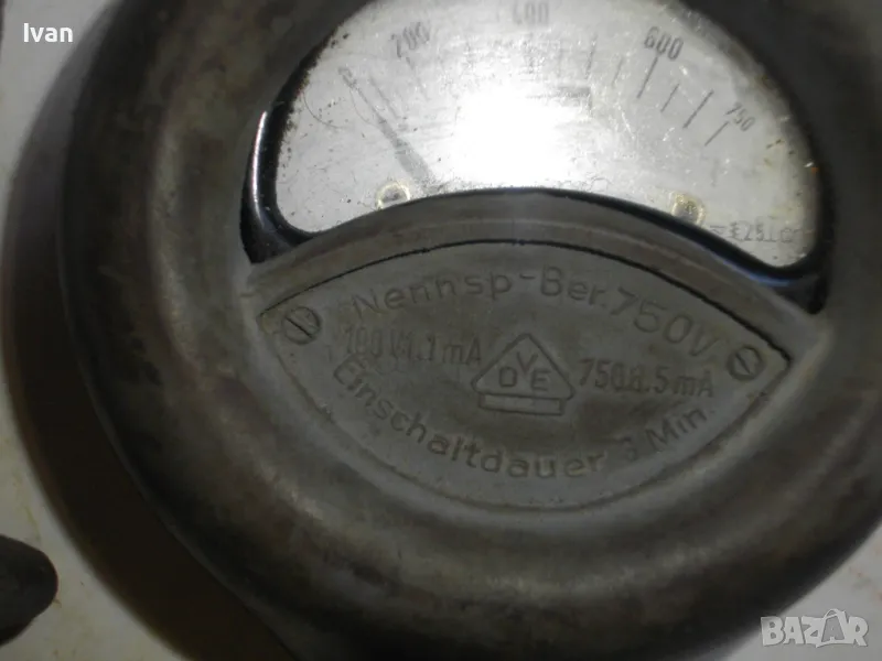 ОПИСАНИЕ на уред волтметър старо немско качество 0-750 волта. Марка/маркировки - RUDOLPH TIETZSCH KG. Консумация при 180V-1mA, консумация при 750 волта -5 mA