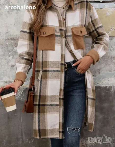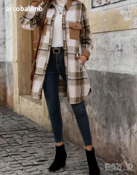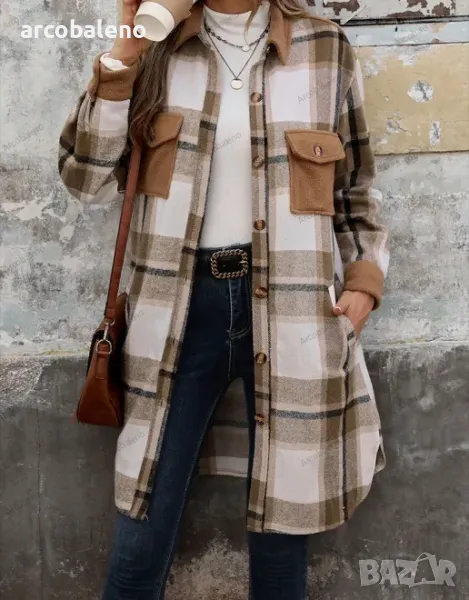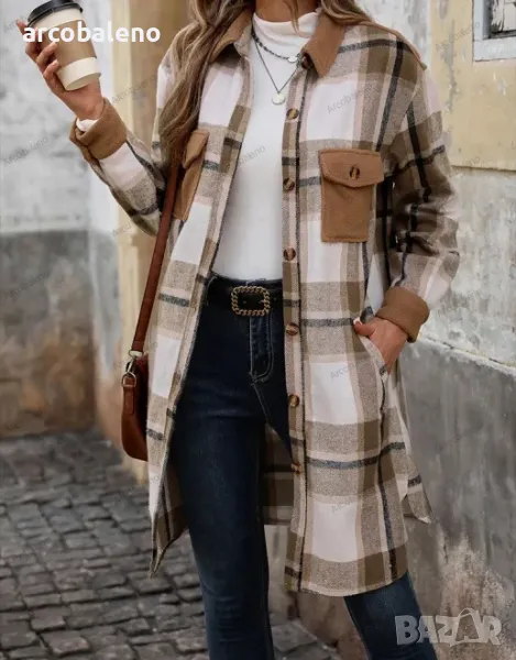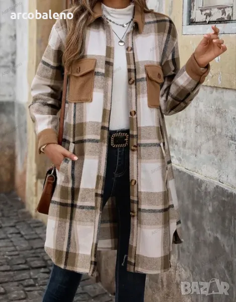 Ново дамско карирано яке в стил пачуърк със средна дължина