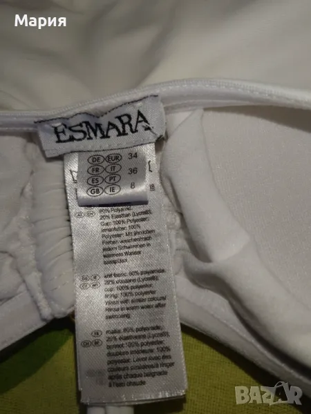 Продавам цял бански, размер 34/XS-S. Банският е с вградени, меки подплънки и няма банели. Има силиконова лента от вътрешната страна, за да не се свлича при носене. Връзката покрай врата може да се свали. Не е носен, със забележки по металната халка.