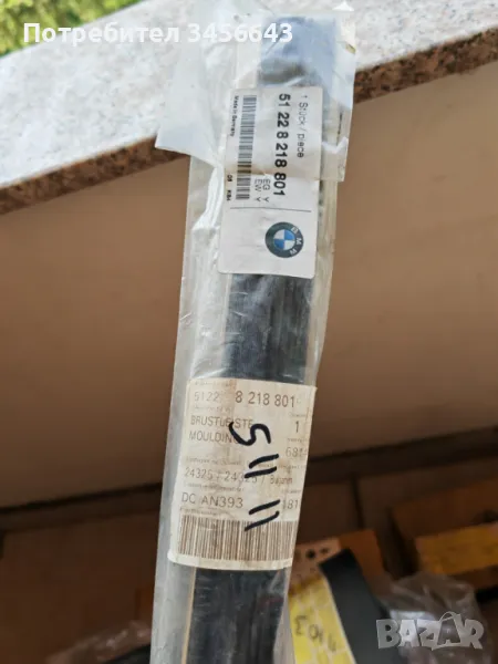 51168269026-основа дясно огледало 3 е46;5 e39-50 лв;84116936695-стойка за телефон-series 3 е46;series 5 е39;series-x5 е53-100 лв;63117339058-десен мигач за bmw 7 F01 LCI-150 лв;51117154720-дясна решетка в предна броня-series 3 e92;e93-40 лв;51478165318-заден капак за стоп-series 3 e36-35 лв;34521163089-модул ABS series 3 e36;Z3-250 лв;51228218801-лайстна-series 5 e39-40 лв;51110305015-стойка ляв и десен халоген x3 e83;e83 LCI-60 лв;51718132675-уплътнение за багажник series 3 e36 кабрио-120 лв;65779240083-модул AIRBAG x5 e70-250 лв;61319241956-5-F07;F11 LCI;6 F06 LCI-180 лв