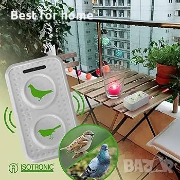 Ултразвуково устройство за прогонване на птици ISOTRONIC®, преносимо устройство за отблъскване на птици, захранвано от батерии, плашило за гълъби - Опаковка от 2 бр.
