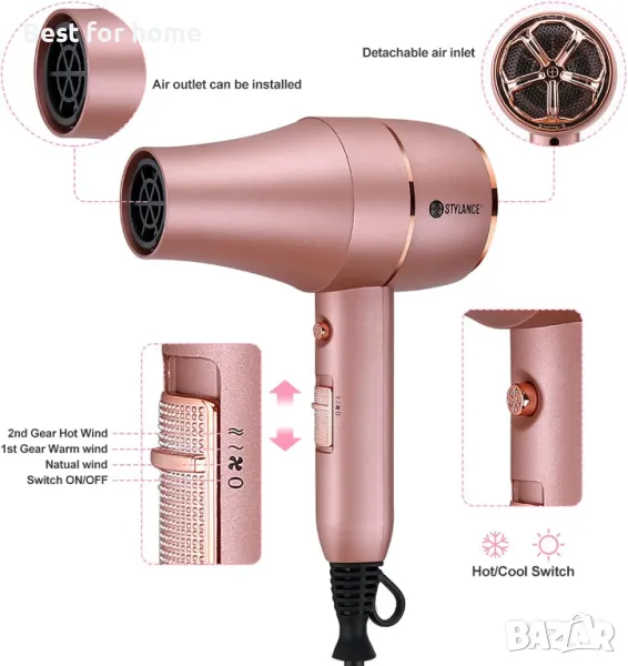 Мощен сешоар STYLANCE Barber Ionic Salon, професионални 3 скорости, 2 бутона за охлаждане 2000 W, мощен променливотоков двигател, приставка съдържа четка за обем и гребен, концентратор, накрайник за оформяне, сешоари за жени, мъже