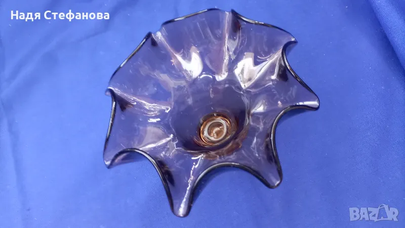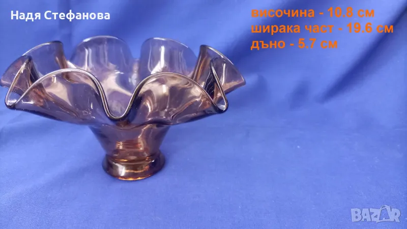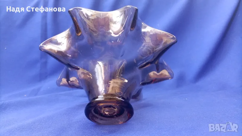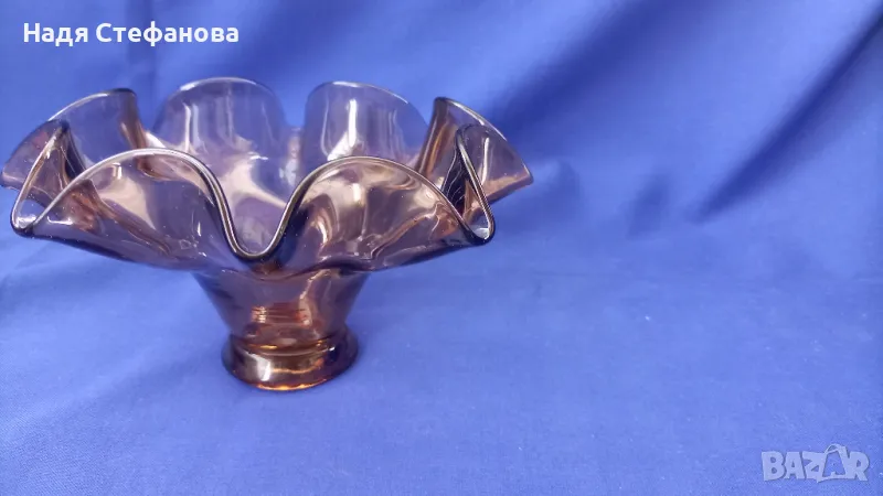 Бонбониера или фруктиера, цветно кафяво стъкло, масивна → Обява 46942629