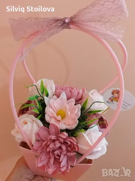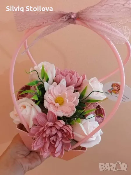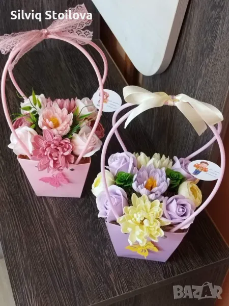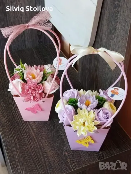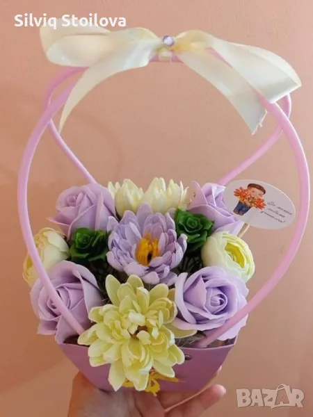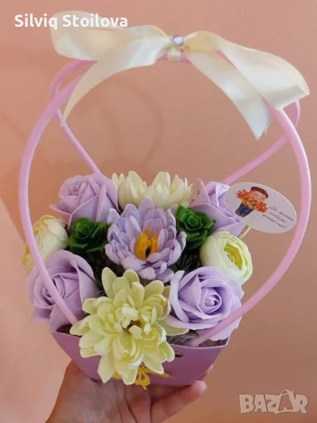💜🌸НОВО🌸💜Кошнички със сапунени рози,хризантеми и лютичета → Обява 46943544