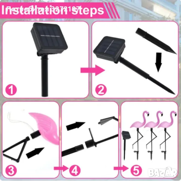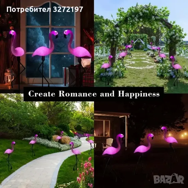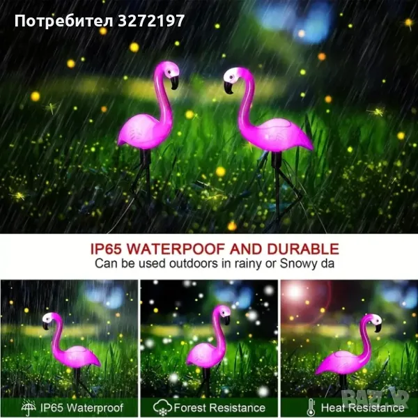 Комплект от 3 бр.LED Соларна лампа Фламинго,водоустойчива IP65
