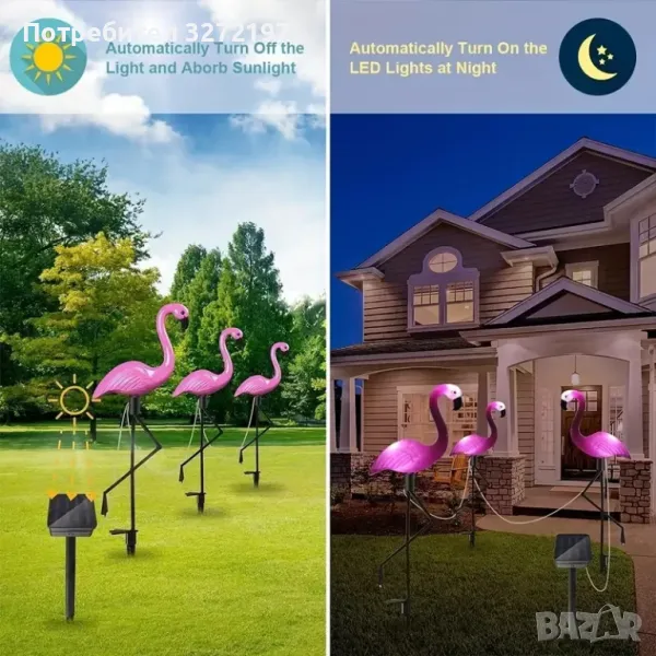 Flamingo се включват автоматично, когато е тъмно, и се изключват при