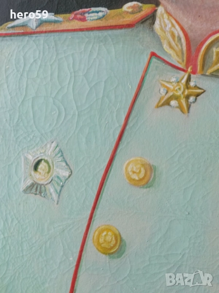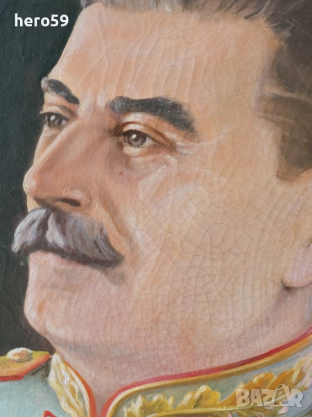 За продажба стара картина.Размери на самата картина 45/36 см. Продавам много рядък портрет на Сталин рисуван през първата половина на миналия век. Рисуван на платно с маслени бои.Рамкиран скоро ,подрамката също е нова.Размери 37/47 само на портрета.С рамката 44/54 см.Има подпис и година,но при рамкирането така се получи ,че не се вижда целият подпис и годината.Рисувана е през 1947година.Цена 4000 евро.