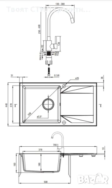 Промо К-т Кухненска Мивка от Гранит, Огъващ се Смесител, Сифон - 499лв