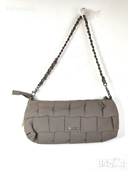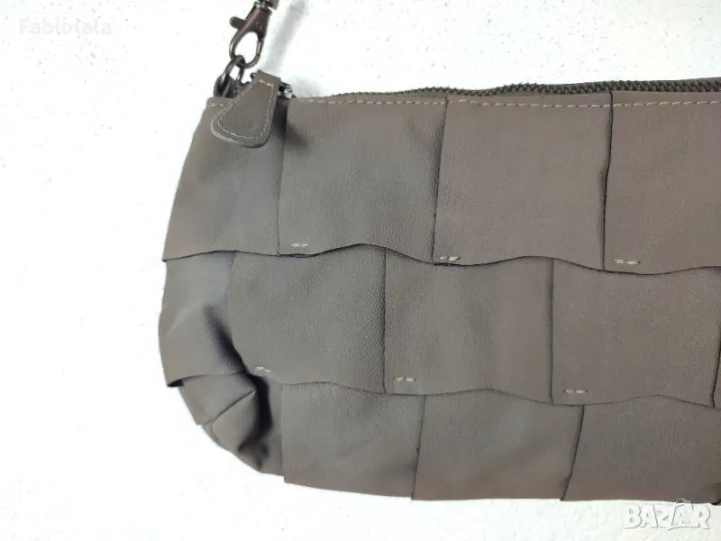 Чанта за рамо 35x15 без презрамка с припокриващи се парчета веган кожа и джоб с цип отвътре.
