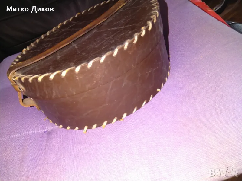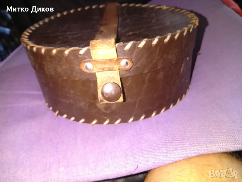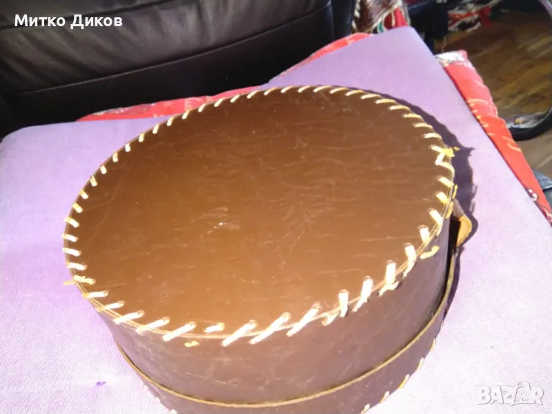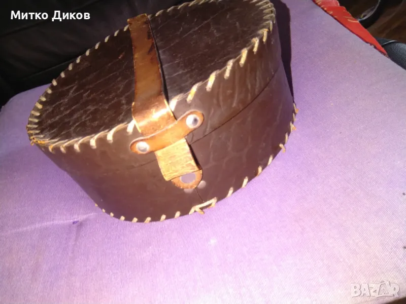 Кръгла кутия облицавна с кожа Н-8см и фи 21см отлична → Обява 46945693