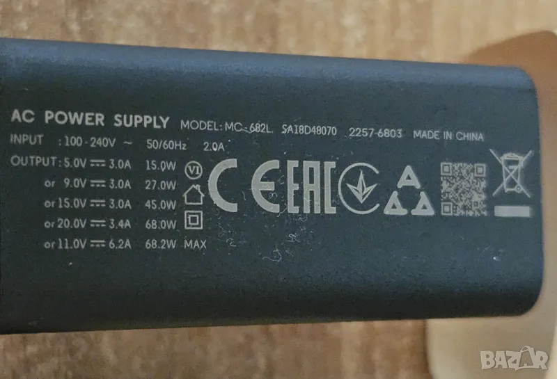 Ново оригинално зарядно Motorola 68W + оригинален usb-c кабел. Само за Пловдив, лично предаване.