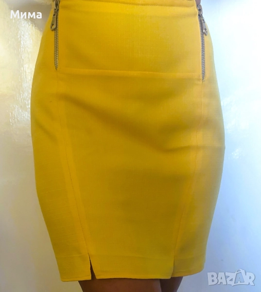 Дамско-юношеска жълта пола с два ципа отпред, S, 4 лв.