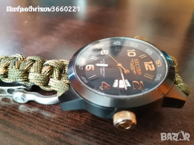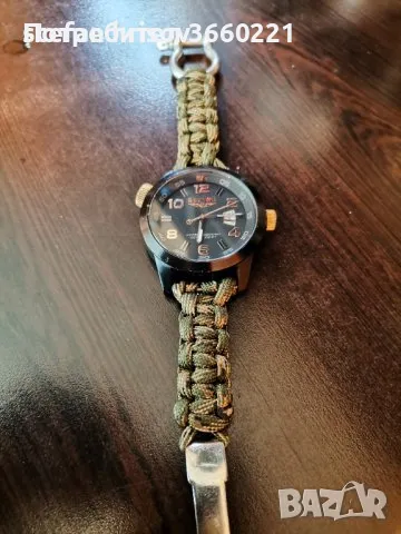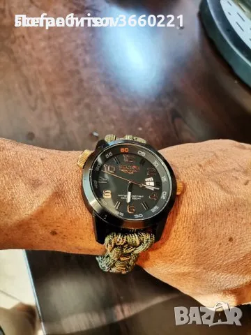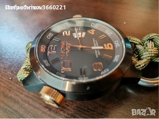 размер на корпуса 48мм.10 атм. водоустойчив.може да се плува с него. каишка за оцеляване,регулируема 3 степени.часовника перфектно работи.леки следи от употреба по корпуса.