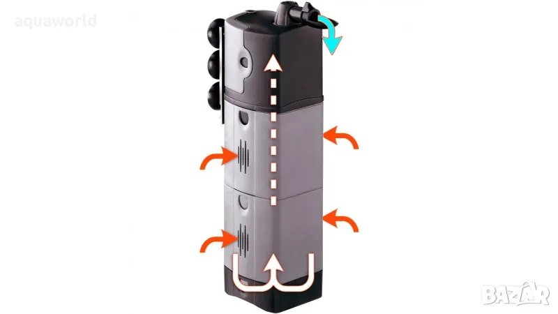 Blumodular е иновативна вътрешна филтрираща система за аквариуми, оборудвана с модули, които могат да се комбинират и добавят, както желаете. Този аквариумен филтър позволява едновременното използване на различни материали, гарантирайки висока мощност на засмукване, отличен капацитет на филтриране и бърз поток на водата. Водата преминава през всички нива на филтриращите части, тъй като течността навлиза отстрани, след това се отвежда към долната част и от дъното започва да се издига. Затварящите устройства автоматично затварят решетката за всмукване, за да предотвратят връщането на мръсотия в резервоара по време на операции по поддръжка. Blumodular дифузерът е многопосочен и дюзата е регулируема.