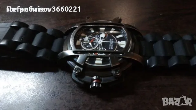перфектен.коронка на винт.леки следи от употреба.силна луминисценция през цялата нощ.чисто нова силиконова каишка.титаниев корпус. неработещ хронограф.рядък модел .100 метра водоустойчив.