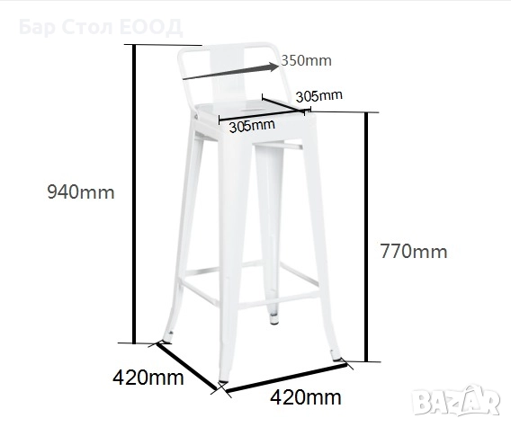 Метален Бар Стол с облегалка - 2г гаранция и доставка до еконт → Обява 46947901