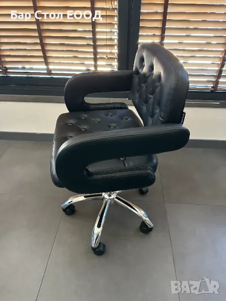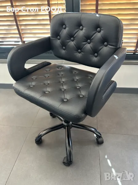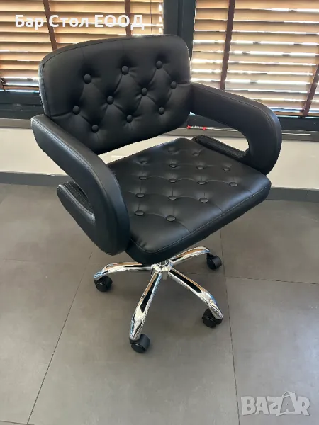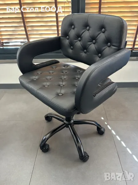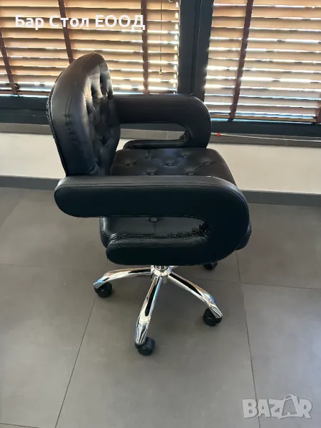Удобен кожен стол на колелца с подлакътници