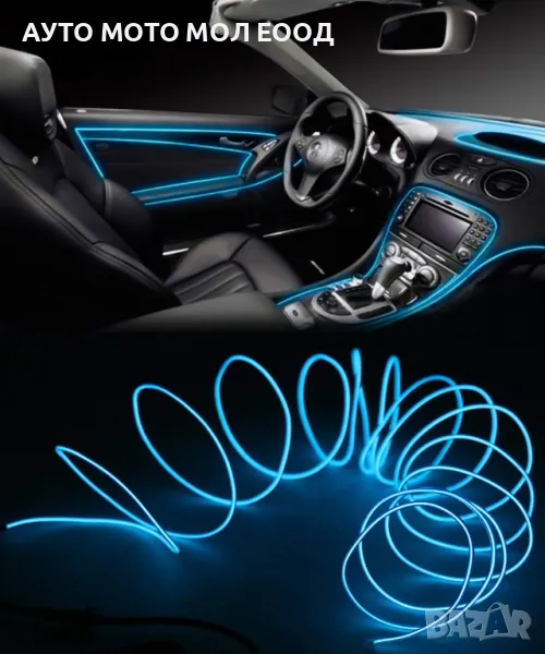 Интериорна лед лента за осветяване на арматурното табло, която е позната още като амбиентно осветление за кола. Лед лентата е енергоспестяваща, водоустойчива и подлежи на корекция. Тя очертава точните извивки на интериора на автомобила и придава по стилен дизайн. Не вреди на зрението. Ергономичната и форма позволява да се огъва под всякаква форма. Може да се използва за външна и вътрешна употреба. Захранва се от гнездото на запалка. Подходяща е за използване в автомобили, каравани, камиони, декорация у дома и други.