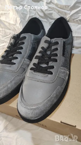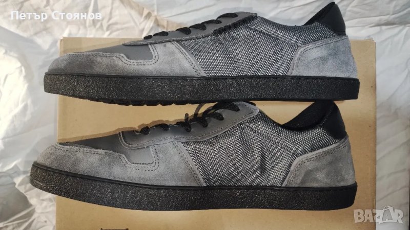 Предлагам страхотни мъжки сникърси на реномираната немска марка Groundies. Обувките са чисто нови, в кутия, купени са миналата година на разпродажба за 59.55 евро при редовна цена от 79.95 евро. Произведени са в Германия от сив естествен велур в комбинация от сив текстил. Хастарът и стелката са от текстил, подметката е от полиуретан, шити и лепени са. Дължината на стелката е 28 см, височината на подметката при петата е 2 см. Изпращам с избран от купувача куриер и възможност за преглед и тест.