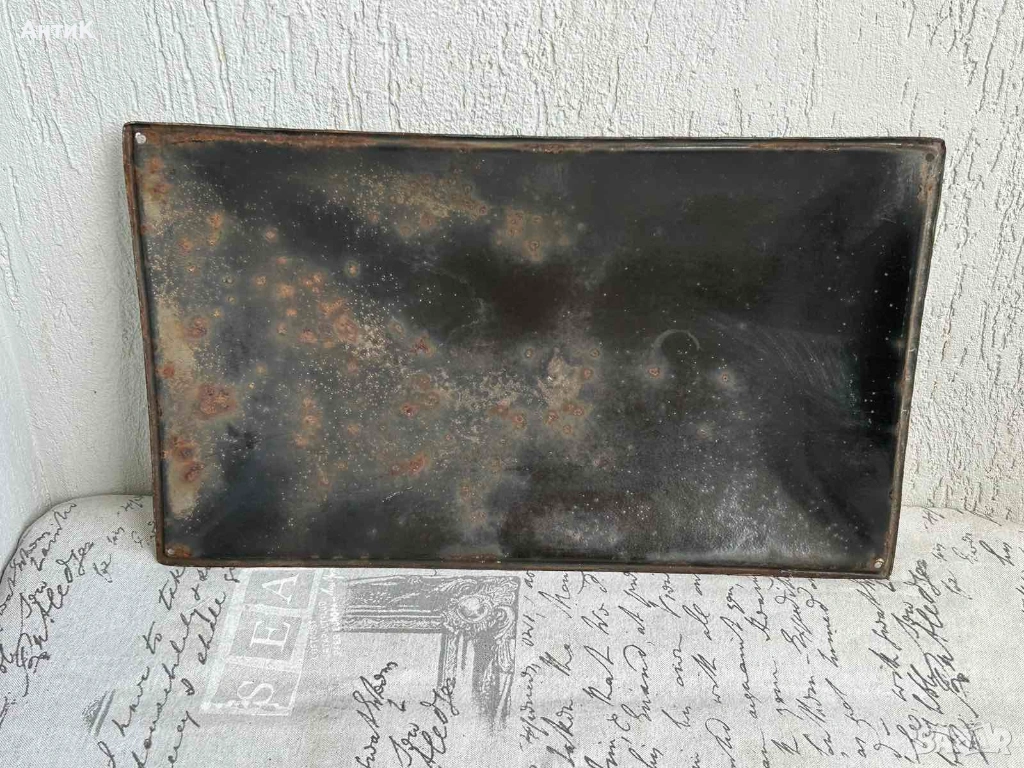 Рядко срещана емайлирана табела от времето на соца. Състояние видно от снимките.