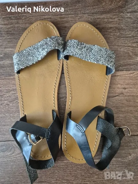 Черни дамски сандали с кожена каишка на глезена White sun → Обява 46951154