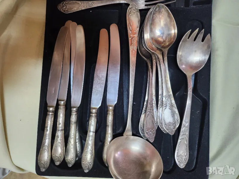 Предлагам запазен ( ново състояние) комплект от прибори - изработени от дълбоко посребрен мелхиор.