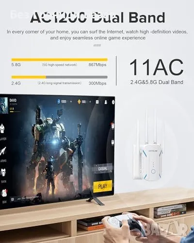 Нов 1200Mbps WiFi Удължител Двойнобандов 5GHz & 2.4GHz Рутер Бустер Антена, снимка 1 - Друга електроника - 46951474 Нов 1200Mbps WiFi Удължител Двойнобандов 5GHz & 2.4GHz Рутер Бустер Антена, снимка 2 - Друга електроника - 46951474 Нов 1200Mbps WiFi Удължител Двойнобандов 5GHz & 2.4GHz Рутер Бустер Антена, снимка 3 - Друга електроника - 46951474 Нов 1200Mbps WiFi Удължител Двойнобандов 5GHz & 2.4GHz Рутер Бустер Антена, снимка 4 - Друга електроника - 46951474 Нов 1200Mbps WiFi Удължител Двойнобандов 5GHz & 2.4GHz Рутер Бустер Антена, снимка 5 - Друга електроника - 46951474 Нов 1200Mbps WiFi Удължител Двойнобандов 5GHz & 2.4GHz Рутер Бустер Антена, снимка 6 - Друга електроника - 46951474 Нов 1200Mbps WiFi Удължител Двойнобандов 5GHz & 2.4GHz Рутер Бустер Антена, снимка 7 - Друга електроника - 46951474 1/7