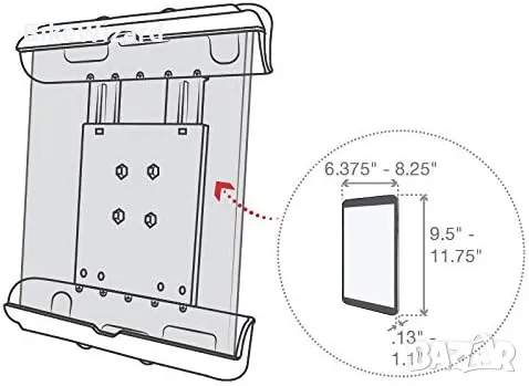 Съвместим с кръгли сферични основи RAM размер B и C за закрепване на рамо с двойно гнездо; технологията на топката и гнездото позволява почти безкрайна регулируемост Продуктова съвместимост с калъф: Apple iPad (1-во, 3-то и 4-то поколение), Apple iPad 2, Dell Venue 10 7000, Google Nexus 10, HP ElitePad 900 G1, HP Pro 610, HP Pro Slate 10.1, Lenovo S6000, Lenovo Yoga Tablet 2 (10 инча)