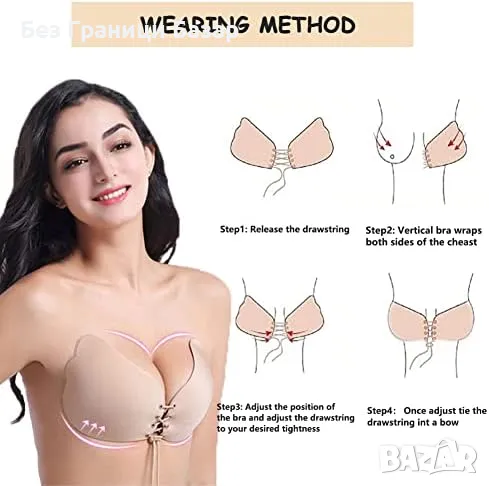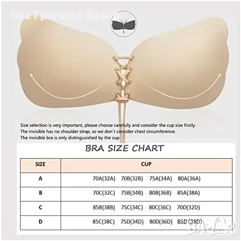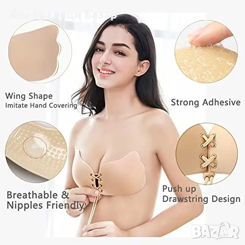 Нов невидим сутиен 2 броя - самозалепващ без презрамки Размер D за жени