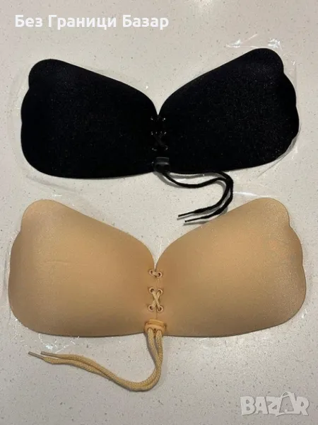 2 броя невидими сутиени в бежово и черно, подходящи за различни облекла.