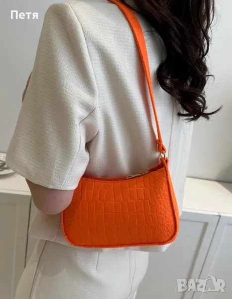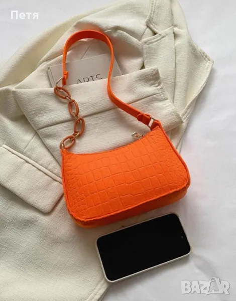 Мини дамска чанта в оранжево крокодилски принт → Обява 46953404