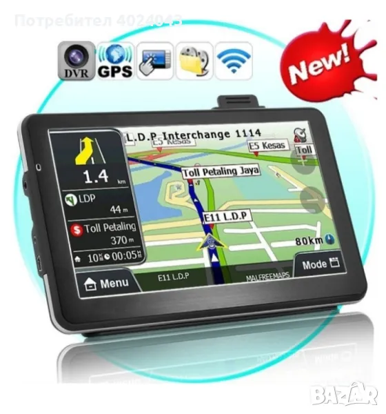 Навигация 7 нова P I O N E R Навигация с последен софтуер и карти на български език / Процесор: M s t a r MSB2521: 500MHz ARM9 + GPS BaseBand + Coprocessor + 3D Graphics Accelerator; Операционна система: Windows CE 6.0; Размер на екрана: 7 инча; Оперативна памет: 128Mb; Памет: 4Gb вградена; FM предавател: 88Mhz - 108Mhz; Антена: Вградена високочувствителна антена; Батерия: Вградена литиево-йонна батерия; GPS точност: до 1 метър.
