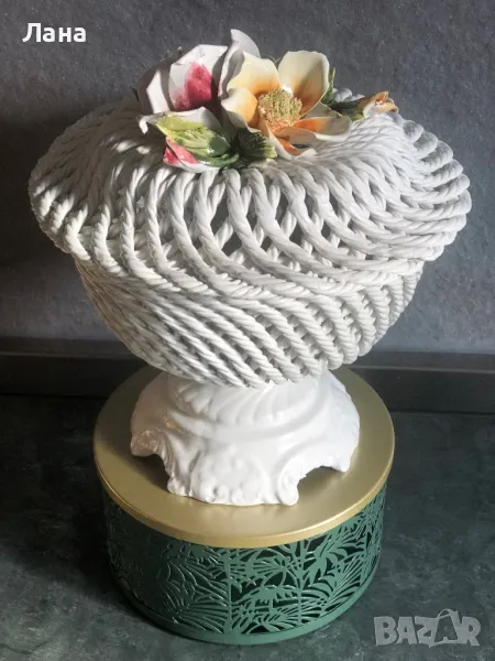Bassano Capodimonte , ретро италианска порцеланова фруктиера в центъра на масата, Ръчно рисувана, височина 20 см, в отлично състояние, доставка c Еконт, качествена опаковка, подробности в съобщение