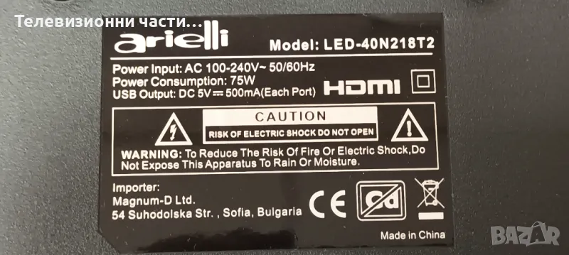 Arielli LED-40N218T2 със счупен екран V400HJ9-PE1 C4/TP.MS3663S.PB803/HRS-H309-395N218-0306-3030-12-